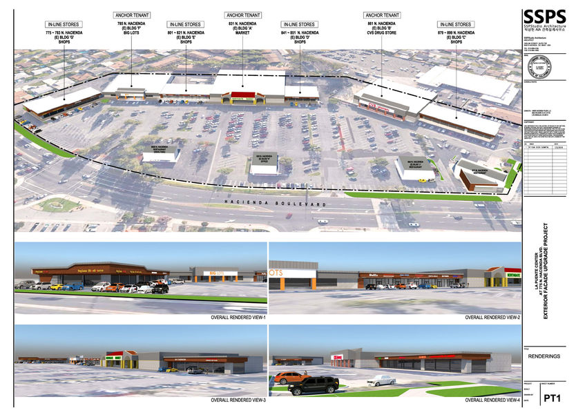 Existing 12 Acre, 120,000 sq. ft. Shopping center Facade Remodeling Design with the city Planning Site Plan and Design Review approvals.